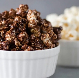 1 paket pokovke za mikrovalovno pečico sol Za preliv 100 g mlečne čokolade 40 ml jogurta