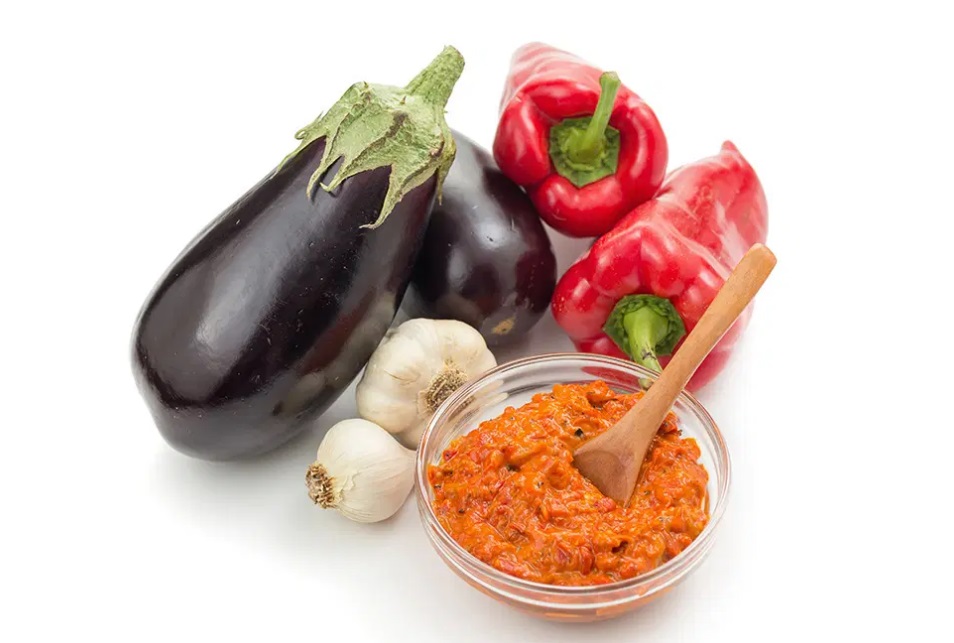 3 kg rdečih koničastih paprik 1 kg jajčevcev 2 dl olja 1 glavica česna 1 feferon – neobvezno 1 žlica soli