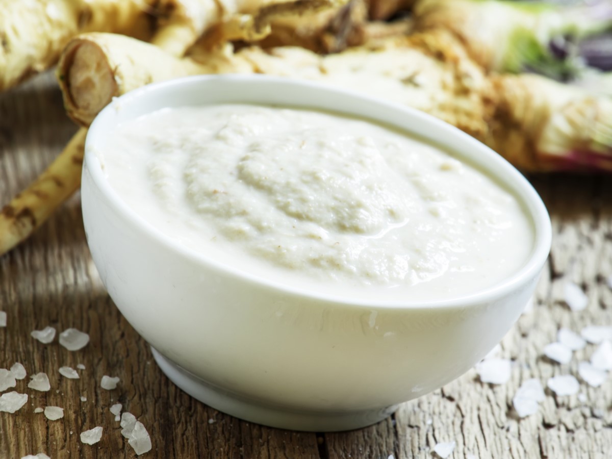 2 dcl sladke smetane 4 žlice naribanega hrena par kapljic limoninega soka malo soli