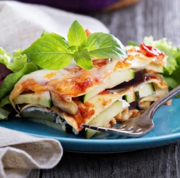 Pečico segrejemo na 200 stopinj. V pekač, namaščen z oljem, v plasteh naložimo jajčevce, bučke, mocarelo, paradižnik in testenine ter začinimo s soljo in poprom. Zaključimo s plastjo lazanje. Prelijemo z bešamel omako in pazimo, da so testenine prekrite. Potresemo z nastrganim parmezanom in 40 minut pečemo v pečici. Takoj ponudimo.