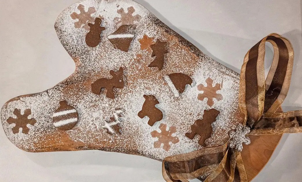 Nato ga razvaljamo na 3 mm debelo ploščo in z modelčki za piškote izrežemo poljubne oblike.