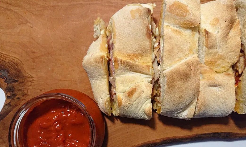 Vzhajane štručke razvaljamo in v vsako položimo najprej dve rezini pršuta, nato pečene trakce ombola. Čez meso potresemo 5 dag naribanega (edamca in parmezana) in na tanke rezine narezan paradižnik. Štručke pred peko še premažemo z oljčnim oljem.