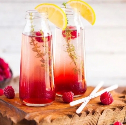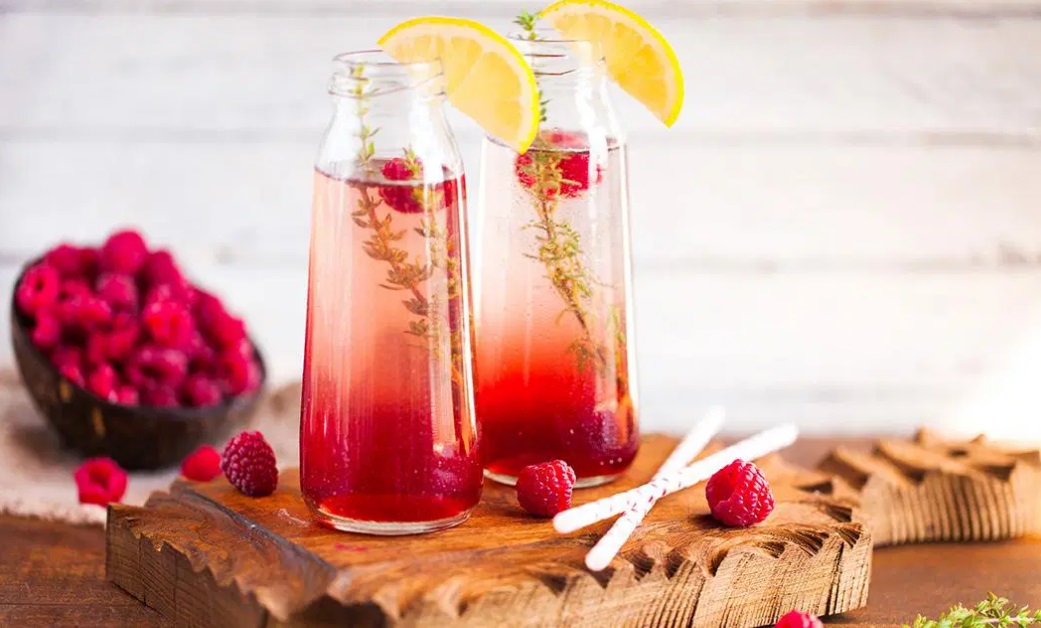 1 kg malin 700 g sladkorja velik šopek melise – sveže 1,5 l vode 100 g citronke