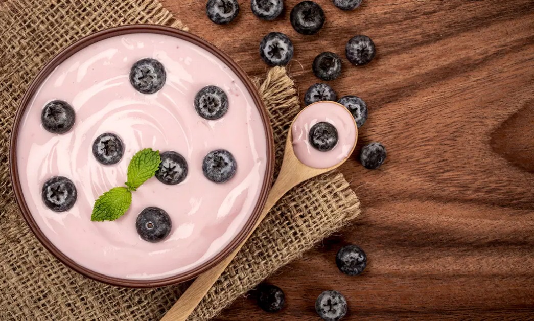V manjše skodelice damo na dno nekaj žlic borovničevega pireja in čez prelijemo jogurt. Preden postrežemo ga ohladimo v hladilniku in okrasimo s svežimi borovnicami.
