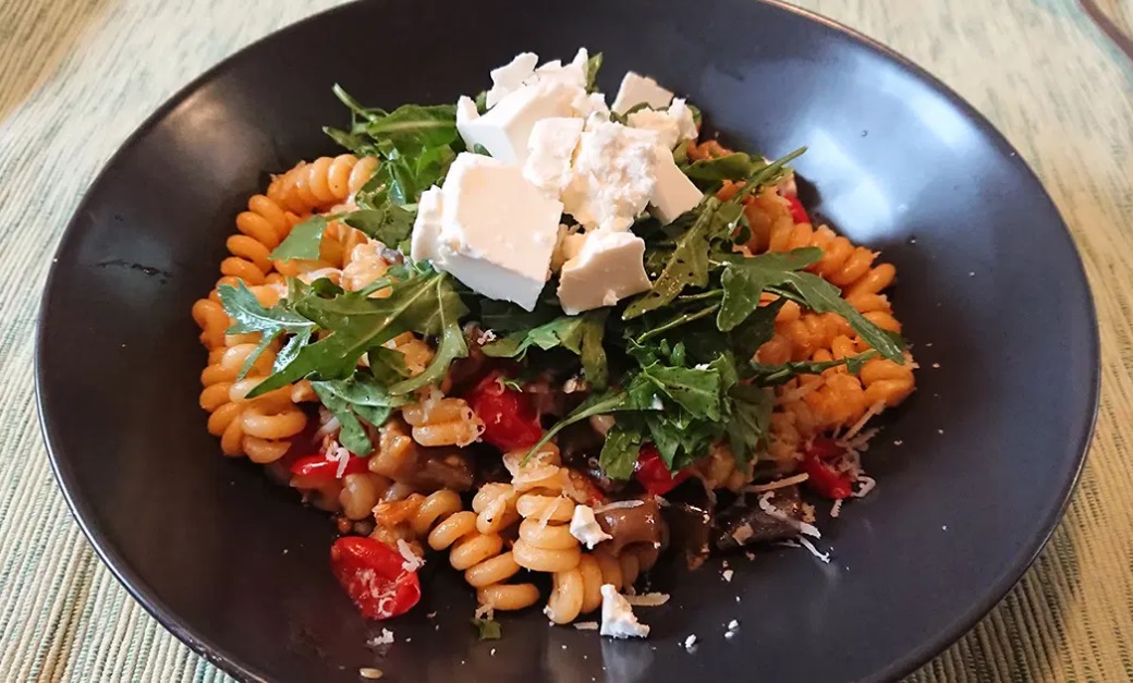 KUHINJA.COM | Testenine z jajčevci, rukolo in mehkim belim sirom ...