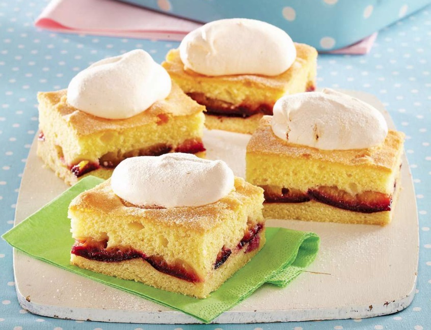 Sveže ali vložene slive 2 beljaka 60 g sladkorja v prahu 1 žlica limoninega soka