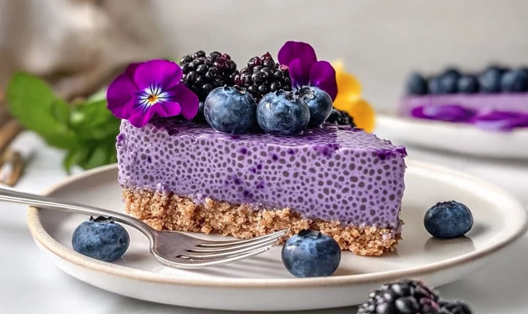 Ta čudovita sladica združuje zdravstvene koristi chia semen s sladkostjo borovnic, vse skupaj na enostavni presni osnovi.