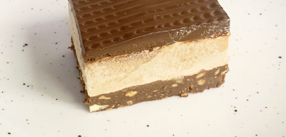 V večjo posodo dodamo mlete piškote, mleko, stopljeno maslo, sladkor in stopljeno čokolado ter sestavine dobro premešamo, da se povežejo in sprimejo skupaj. Maso razporedimo po pekaču in jo z dlanjo pritisnemo ob podlago, da naredimo enakomerno debelo osnovo, ki jo postavimo v hladilnik, medtem ko pripravljamo čokoladno kremo.