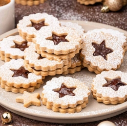 Iz vseh sestavin zamesimo gladko testo in ga pustimo na hladnem počivati urico ali dve. Nato razvaljamo na pol centimetra debelo, izrežemo poljubne oblike, polovica naj jih ima luknjo. Pečemo na s peki papirjem obloženem pekaču približno 12 minut na 180 stopinjah.