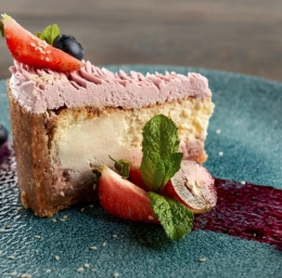 Okrasite sirov kolač s svežimi jagodami, borovnicami in lističi mete. Postrezite ohlajeno.