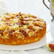V posodi zmešamo moko, sladkor, mleko, ščep soli, sladko smetano, jajca in stopljeno maslo. Tortni model po dnu in ob robovih obložimo s plastjo listnatega testa in vanj prelijemo zmes.