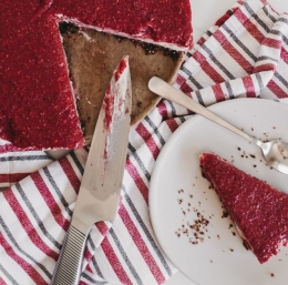 180 g datljev 120 g orehov 100 g ovsenih kosmičev 2 žlici kakava v prahu 180 ml mandljevega napitka 6 g agar agar 270 g indijskih oreščkov (namočenih čez noč) 60 ml mandljevega napitka 100 ml agavinega sirupa 120 g kokosovega olja vanilijev strok 8 žlic pomarančnega soka 250 g malin 100 g agavinega sirupa 4 žlice chia semen