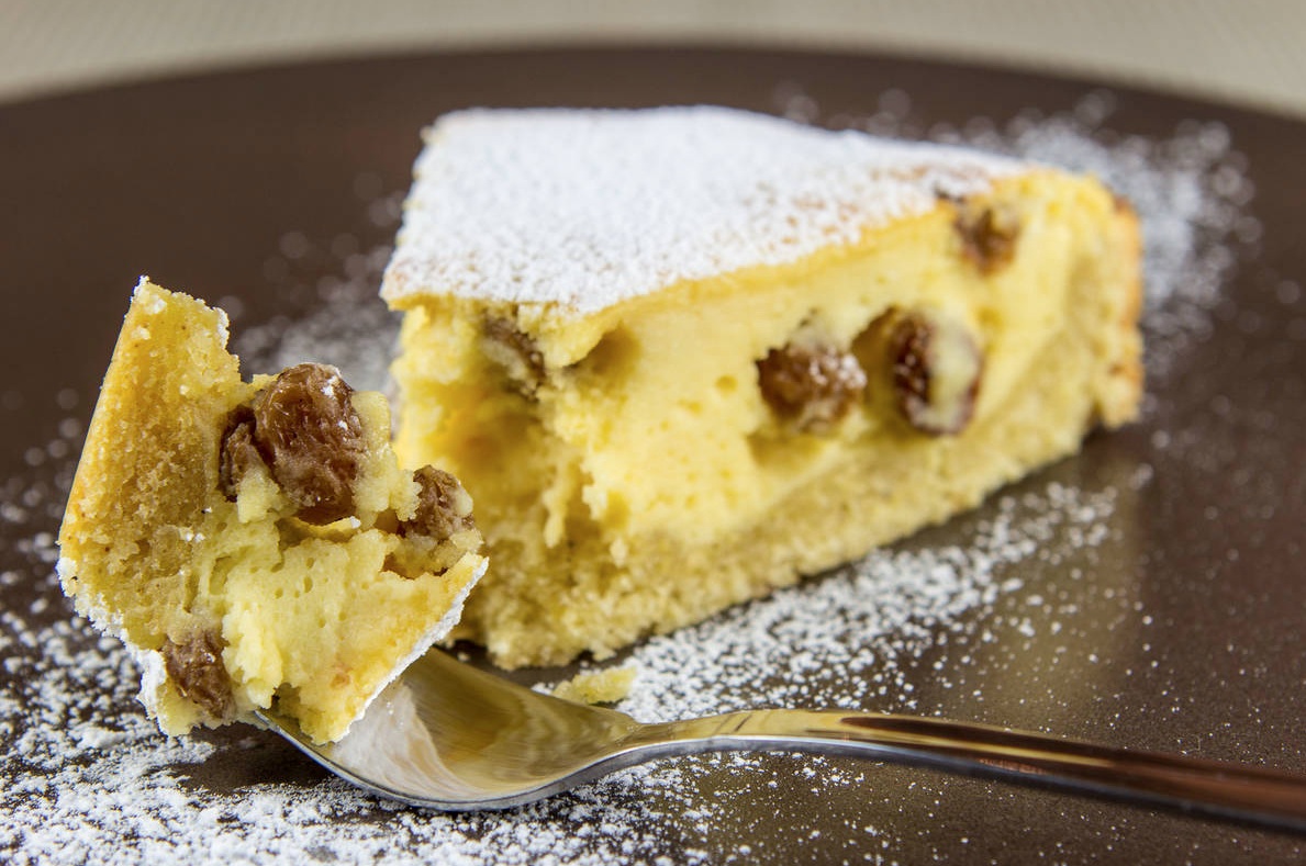 Rozine preberemo, operemo in odcedimo. V skledo stresemo skuto in jo zmešamo z jajcem in naribano limonino lupinico. Primešamo odcejene rozine.