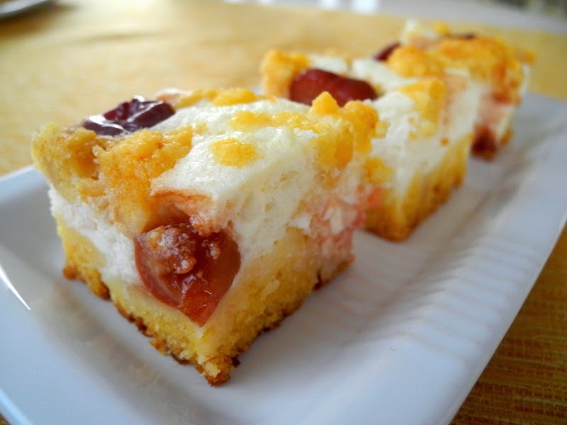 Ne le sezona jagod, tudi sezona češenj je tu! Za prve vroče dni, ki jih je žal prekinil dež, sem pripravila osvežilno jogurtovo pecivo s češnjami. Lahko, sočno in čisto poletno. Pitasto testo je zelo okusno in ga lahko uporabimo tudi pri drugih sladicah: