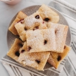 Prihranjeno skodelico mešanice drobtin potresite po malinah.