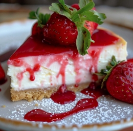 Ko je cheesecake popolnoma ohlajen in strjen, ga previdno odstranimo iz modela za torto ter postrežemo s svežimi jagodami.