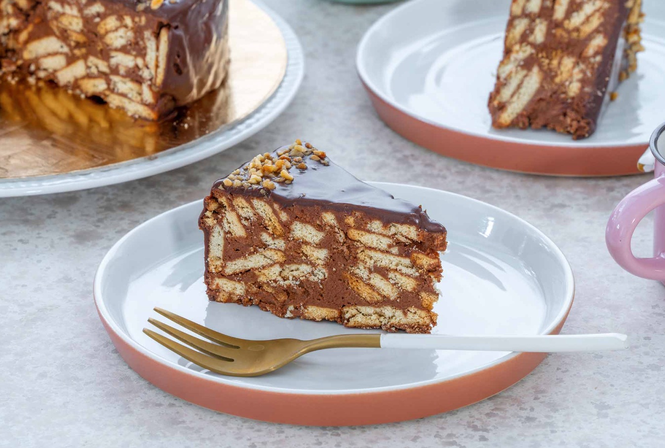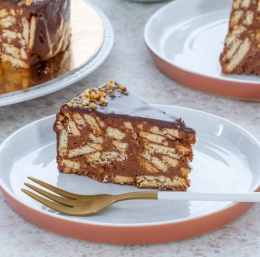 Piškotna čokoladna torta je vsekakor sladica za ljubitelje čokolade. Pripravimo jo z masleno čokoladno kremo, maslenimi piškoti in čokoladnim ganašem.