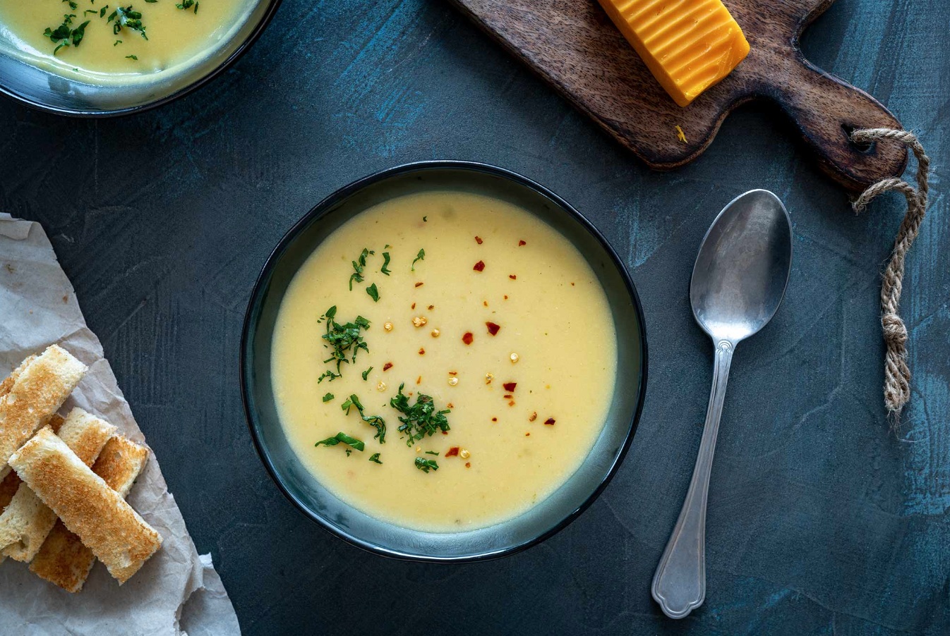 Kremna krompirjeva juha s sirom je izjemno okusna in malce bolj gosta kot jih ponavadi pripravimo. A prav ta gostota ji da prav poseben čar. Krompir in sir poskrbita za bogat okus, ki ni težek in preveč nasiten. Vsekakor za njeno lahkotnost poskrbita limetin sok in čili, ki dodata pravo mero živahnosti.