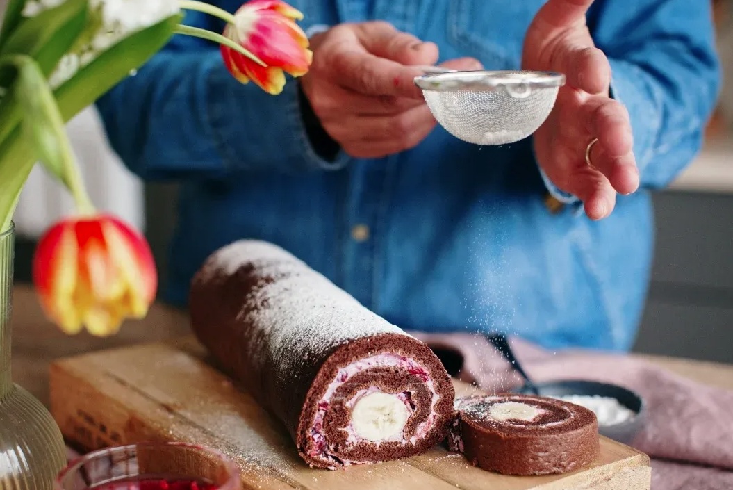 Biskvit odvijemo in premažemo s pravkar pripravljeno kremo.