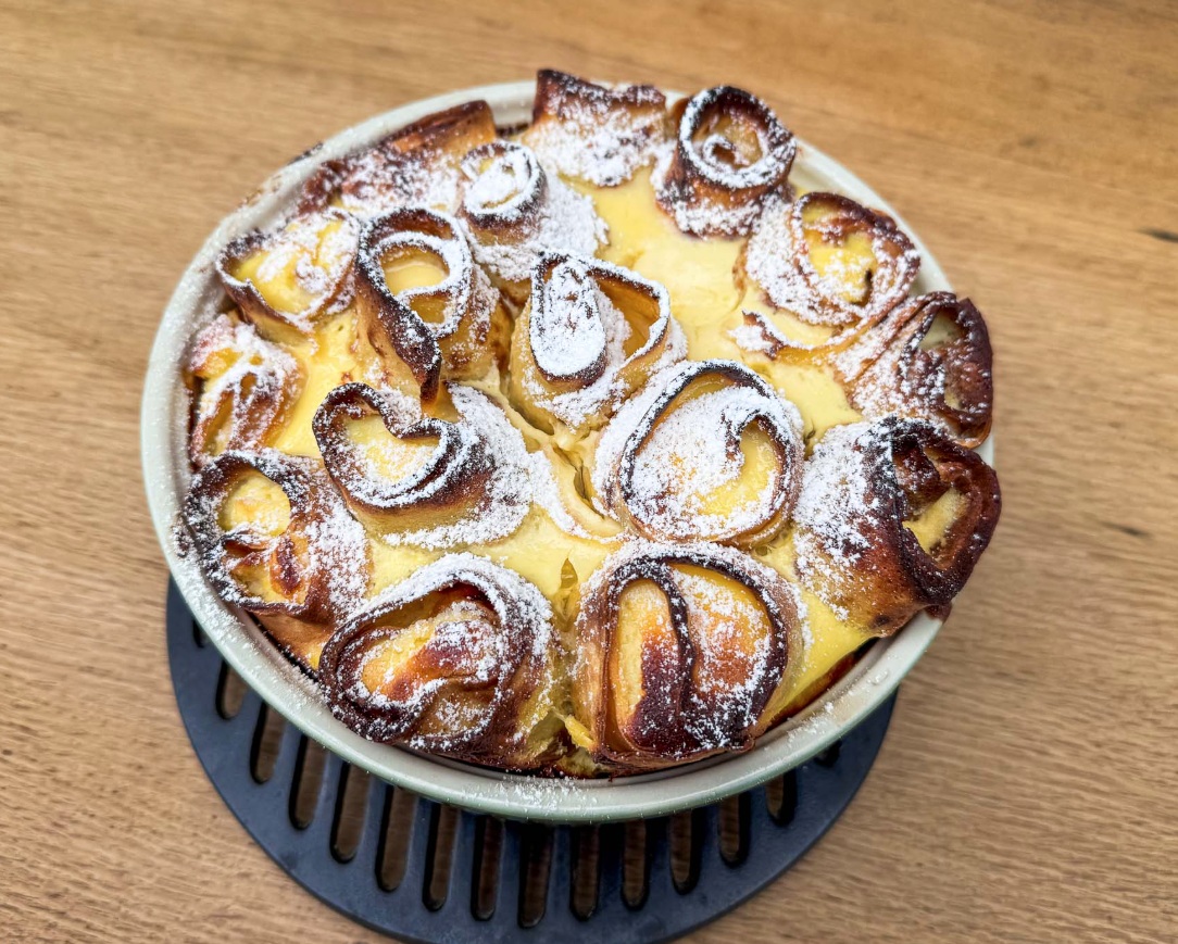 Skutne palačinke so hrana za dušo. So sladke, vendar niso (le) sladica. So, torej, samozadostne, vendar je vseeno dobro, če je pred njimi še juha. A ne goveja, temveč zelenjavna, čim bolj sezonska in čim bolj gosta. Ker potem palačinke ne smejo biti pregoste in pretežke, kar se skutnim sicer rado primeri. Torej smo jim naredili lahek in penast nadev, in jim dodatno priskrbeli še več površine za hrustljavost. Le pokonci smo jih postavili.