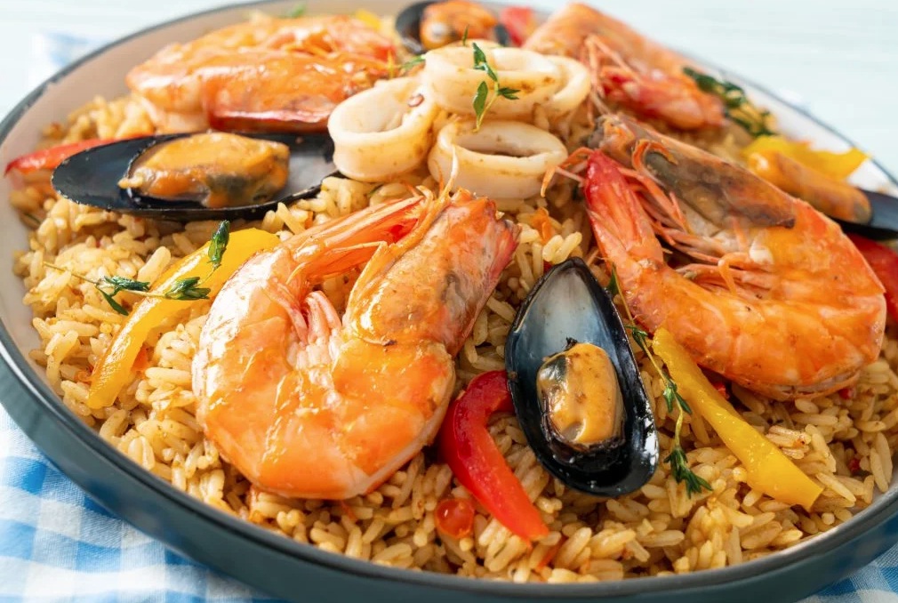 Paella, ta ikonična španska jed, je prava simfonija barv, okusov in arom, ki v sebi nosi duh sončne Valencije. Njen zlato obarvani riž, prepojen z žafranom, v družbi sočnih morskih sadežev, kot so kozice, školjke in lignji, ter pisane zelenjave, je kot umetnina na krožniku. Paella ni le jed, ampak doživetje – pripravljena v široki ponvi, kjer se okusi prepletajo in ustvarjajo nepozaben obrok, ki združuje družino in prijatelje.