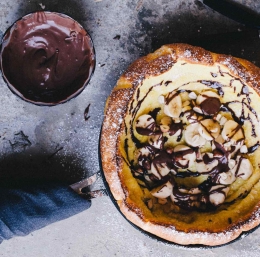 Banane, lešniki in stopljena čokolada so božanski že sami po sebi, skupaj s to mehko, rahlo palačinko pa nastane že nadnaravno čudovita jed.