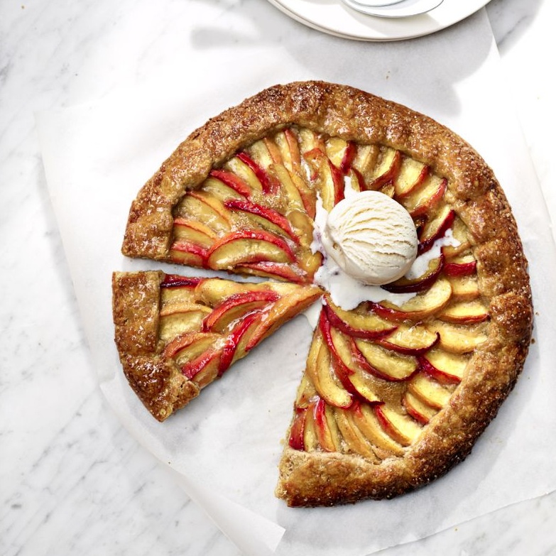 Taka preprosta rustikalna pita, ki se peče kar na širokem plitvem pekaču in brez slepe peke ter ji v Franciji rečejo galette, je odlična tudi z drugimi vrstami sadja – z jagodičjem, rabarbaro, jabolki ali hruškami.