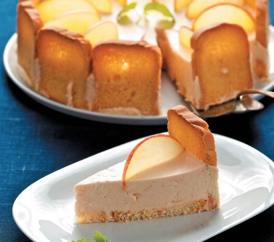 Lepo strjeno torto previdno vzamemo iz modla in poljubno okrasimo s tankimi jabolčnimi krhlji.