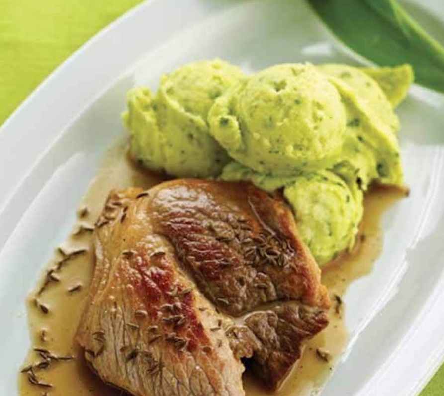 KUHINJA.COM | Pečeni svinjski zrezki s čemaževim pirejem ...
