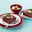 Ko se kolač ohladi, odstranite papir. Segrejte nož in z njim poravnajte robove kolača, da dobite lepo obliko. Nato ga narežite na približno 2,5 cm velike kocke. Pred vsakim rezanjem nož ponovno segrejte. Na koncu s pomočjo cedila posujte kakav preko narezanih kock.