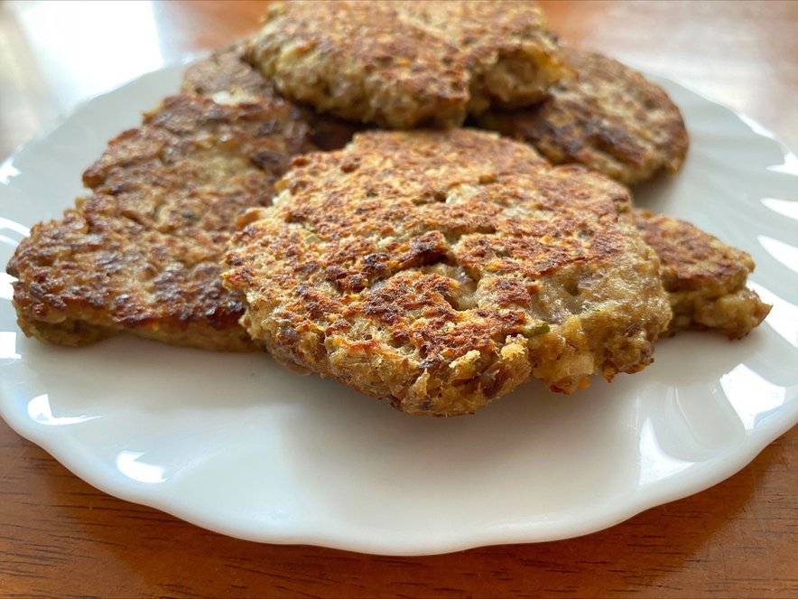 - ;;;Meso drobno zmeljite oziroma nasekljajte in mu dodajte malo skute, jajce, česen, praženo čebulo, malo drobtin in mleto zelenjavo iz juhe. Vse skupaj dobro premešajte in pustite počivati, da se sestavine med sabo lepo povežejo. Iz pripravljene mase lahko oblikujete kroglice, žličnike ali polpete, ki jih ocvrete v olju ali spečete v pečici.