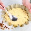 Čeprav se zdi, da bo daljše mešanje ustvarilo bolj gladko testo, se dogaja ravno nasprotno. S preveč mešanja razvijete gluten, kar testo spremeni v elastično in trdo maso – lastnosti, ki jih pri piti nikakor ne želimo. Dovolj je, da se sestavine le povežejo, v testu pa so lahko še vedno vidni drobni koščki masla. Ti se med peko raztopijo in ustvarijo zračne žepke, zaradi katerih je skorja rahla in luskasta. Pri pripravi testa velja pravilo: manj je več.