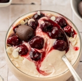 “Mon Cheri” proteinska ovsena kaša z vročimi višnjami brez kuhanja