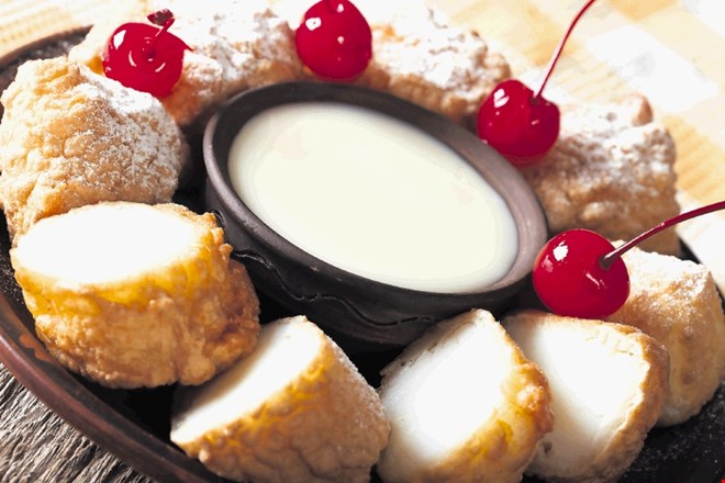 Ocvrte rezine posujemo s cimetom ali sladkorjem v prahu in nemudoma postrežemo (okusne so tudi ohlajene na sobno temperaturo, nekateri imajo radi celo ohlajene v hladilniku) s kepico sladoleda ali mlečno vaniljevo omako. V sezoni jagod ali češenj dodamo še te.