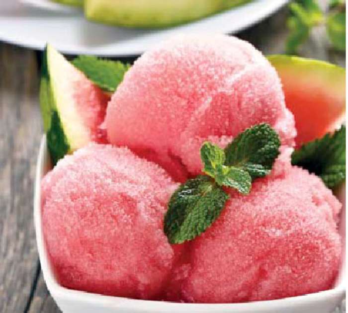 Recept je preprost, užitek pa velik. Namesto vode, v kateri po receptu raztopimo sladkor, lahko uporabimo ledene kocke, ki jih zmeljemo v električnem mešalniku skupaj s sadjem, ali pa uporabimo sladko belo vino, če sorbeta ne bodo jedli otroci. Za romantične: sorbet pripravimo s šampanjcem, ga postrežemo v zatemnjeni sobi in ga nikoli ne jemo sami.