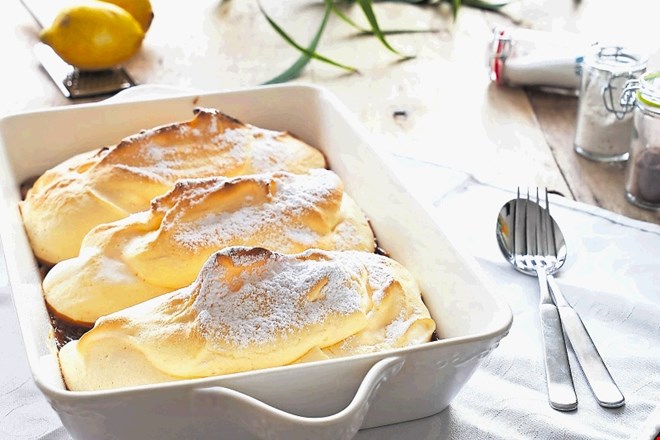 Rumenjake stepemo v kremo, jim primešamo tretjino snega in vse skupaj nežno vmešamo v preostali sneg. V skodelici zmešamo moko, jedilni škrob in limonino lupinico. Mešanico nežno vmešamo v jajčno zmes. Iz mleka odstranimo vaniljev strok, mleko pa vlijemo v manjši pekač z visokim robom. Jajčno zmes s pomočjo žlice oblikujemo v velike žličnike, ki jih polagamo v pekač.