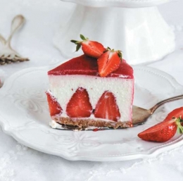 Torto čez noč postavimo v hladilnik. Za preliv ukašimo jagode in jih precedimo. Dodamo limonin sok, prelijemo po torti. Nazadnje nekaj jagod položimo tudi na vrh torte.