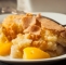 Pripravljeno sladico postrežemo še toplo, s kepico sladoleda ali kupčkom hladne stepene smetane/gostega jogurta.