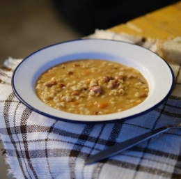 3. V svojem loncu skuhamo še prekajeno meso. Vodo shranimo, saj jo lahko dolijemo v ričet, če le ni preveč slana.