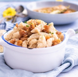 KUHINJA.COM | Pirini krompirjevi žganci s česnovo mastjo in ocvirki ...