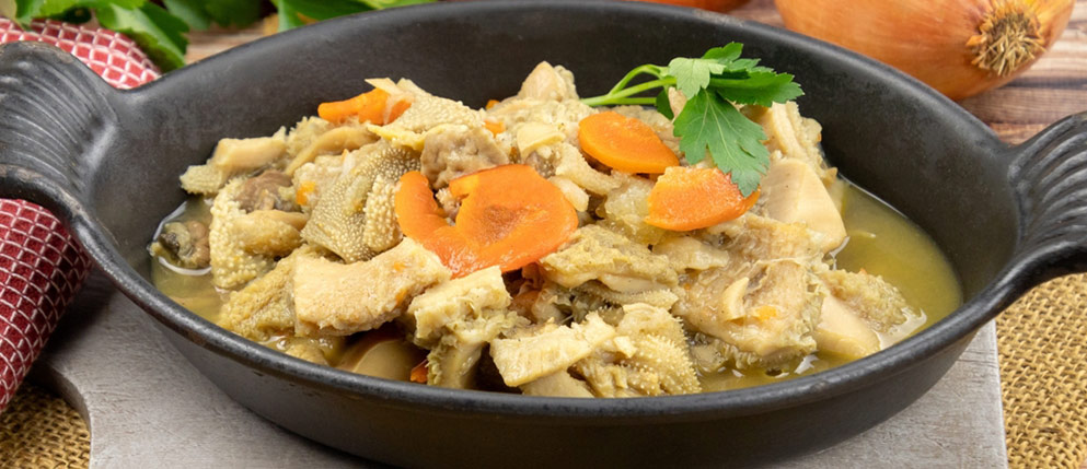Na kratko zraven čebule popražimo še česen in vampe ter zalijemo z belim vinom. Zalijemo z govejo juho in zažinimo s krebuljico, soljo in poprom. Zdaj primešamo še smetano in pustimo, da dobro povre. Vampe postrežemo v krožnikih za juho.