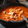 600 g vampov, od mesarja že pripravljenih (očiščenih in vnaprej skuhanih) 1 čebule 2 jedilni žlici masla 2 strok česna 350 ml belega vina 250 ml goveje juhe 200 ml sladke smetane 1/2 šopka krebuljica sol poper (sveže mleti) Število serviranj: 4