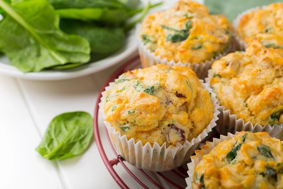 Pečico predčasno segrejemo na 190 stopinj, pekač za muffine pa premažemo s kokosovim oljem. Jajca umešamo do popolne rumene mase ter dodamo špinačo in nariban sir, po želji začinimo s poprom in soljo.