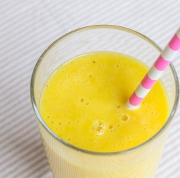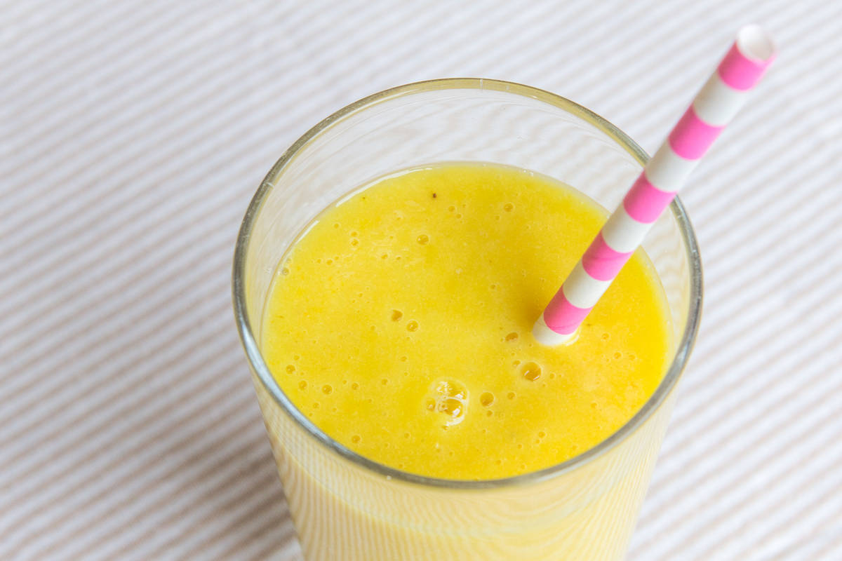 Dodamo banano, pomarančo, mango in 1-2 cm sveže kurkume.