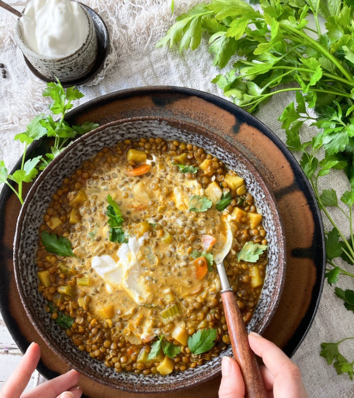 Kuskus lahko postrežemo kot prilogo maroški enolončnici ali pa ga na koncu kuhanja vmešamo v enolončnico, kot je navedeno v receptu.
