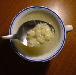 voda, v kateri se je kuhala zelen 2 žlici testenin zvezdic 1 žlica prosa 1 žlička soli kapljica olja
