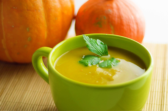 Postrežemo posuto z bučnimi semeni in kruhom.