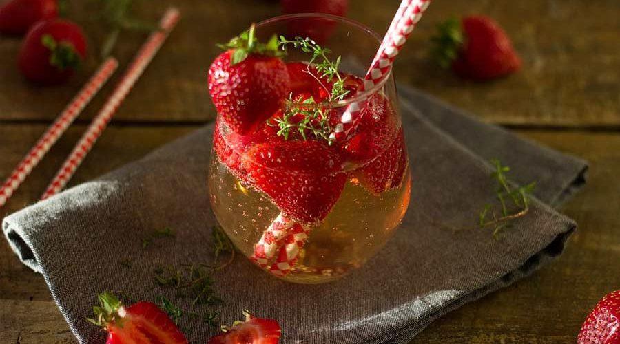 60 dag svežih jagod 8 dag sladkorja (oz. po lastni presoji) sok 1 limone 4 dl kvalitetnega vina