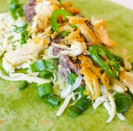 Na drobno narežite polovico svežega čilija in samo zgornje zelene polovice 1 šopka spomladanske čebule ter jih dodajte v ponev. Kuhajte in mešajte 5 minut, nato dodajte čičerko (sok in vse) in mlado špinačo. Zavrite, nato pa na nizkem ognju kuhajte, dokler špinača ne ovene.