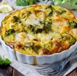 20 g Maslo 1 x Čebula 100 g Dimljena slanina 200 g Brokoli 8 x Jajca 150 ml Smetana 80 g Parmezan